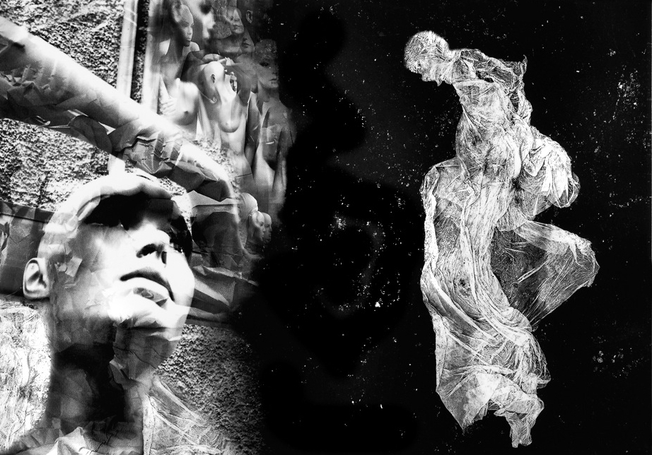 Sur différents supports – pellicule, photo, toile, papiers –, Alain Nahum raconte des histoires d’Inconnus, de Rencontres, de Croisements. Il interroge les traces, les sols. Ces papiers de nuit objets futiles, chargés d’intimité traînant sur l’asphalte, dans les flaques d’eau, sont porteurs de nos désirs, de nos peines, de nos actions futures. Les photos focalisés sur des Kleenex abandonnés laissent planer les silhouettes blanches de l’être humain. L’artiste les libère, leur redonne vie et le lien rouge fil de la communication définit aussi leur territoire dynamique comme limite, comme frontière. Ces petits théâtres, résurgences de Kantor, de Beckett, de Kafka nous captivent. Les voiles, bateaux suggérés, fantomatiques sous des transparences d’espoir portent la lourde charge des errants d’un exode sans fin… La série des photos de mannequins si « parfaites » et si énigmatiques nous parle malgré tout d’humanité – dualité figuration objet et ressemblance humaine. Leur multitude et les ombres suspendues nous projettent dans la liberté d’un hors champ de l’image. Sans oublier les dessins, les peintures de ces enfants – hommes aux regards étonnés, émouvants à la fois différents et semblables inspirés par les lézardes des murs. Visuel : Œuvre signée Alain Nahum.