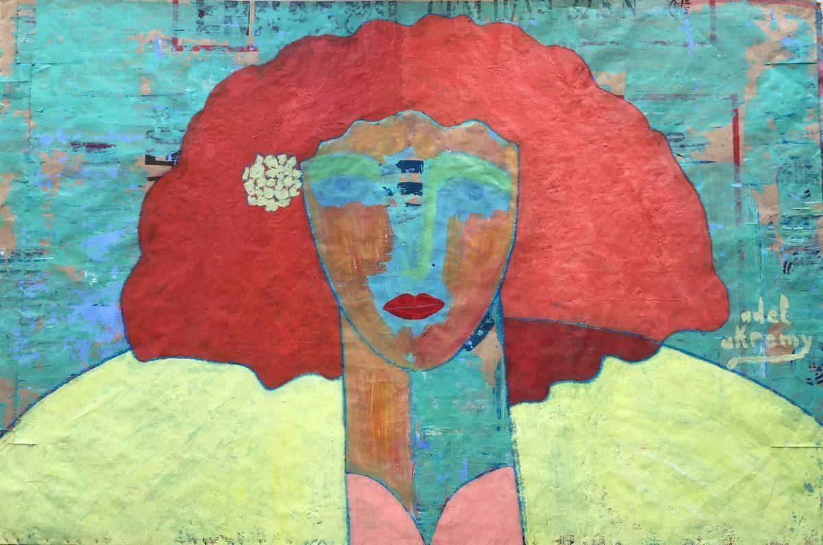 « Adel Akremy peint avec un sourire dans les yeux, sourire d’éternel jeune homme émerveillé par la beauté des femmes, par l’harmonie architecturale de sa Médina, par les couleurs de la nature, du ciel, des ombres et de la chevelure de ses odalisques. Opulentes et lascives elles s’exposent sûres d’elles-mêmes et sûres de la puissance de leurs charmes. Elles attendent la fantaisie d'Adel qui décidera de leur rajouter un bel homme à la chéchia rouge, des poissons volants, des fleurs de toutes couleurs, des seins hauts perchés ou un vêtement sobre et sévère, elles sont ses créations et s’en réjouissent. » Leila Souissi (commissaire d’exposition). Visuel : Toile signée Adel Akremy.