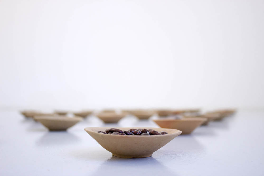 C'est une longue histoire qui unit herman de vries et l'Espace de l'Art Concret. Avant-même l'ouverture du centre d'art, Sybil Albers et Gottfried Honegger connaissaient déjà le travail de l'artiste en acquérant plusieurs de ses œuvres. L'exposition Terre, vie, poésie organisée en 1991, un an après l'ouverture de l'eac., permet une plus large collaboration menée au cours de sa résidence. C'est à cette occasion qu'il collecte des échantillons de terre, plus de 220, récoltés dans les environs de Mouans-Sartoux. Il les intégrera dans son earth museum catalogue après avoir réalisé des frottages sur papier. La nouvelle exposition monographique dédiée à herman de vries, nous donne à voir les liens que l’artiste tisse entre sa pratique artistique et sa pratique littéraire à travers notamment ses écrits mais aussi son activité d'éditeur. En 2024, le musée Gassendi (Digne), la galerie du Dourven (Trédrez-Locquémeau), la galerie Aline Vidal (Paris) et l'Espace de l'Art Concret s'associent pour consacrer une série d'expositions et d'événements autour de l'œuvre d'herman de vries. Visuel> herman de vries, human life (détail), 1989, 39 petits bols en argile, blé, haricots, graines de chanvre (du bazar de katmandou), terre, eau, dimensions variables. Collection herman and susanne de vries ©Photo eac. Adagp, Paris 2024