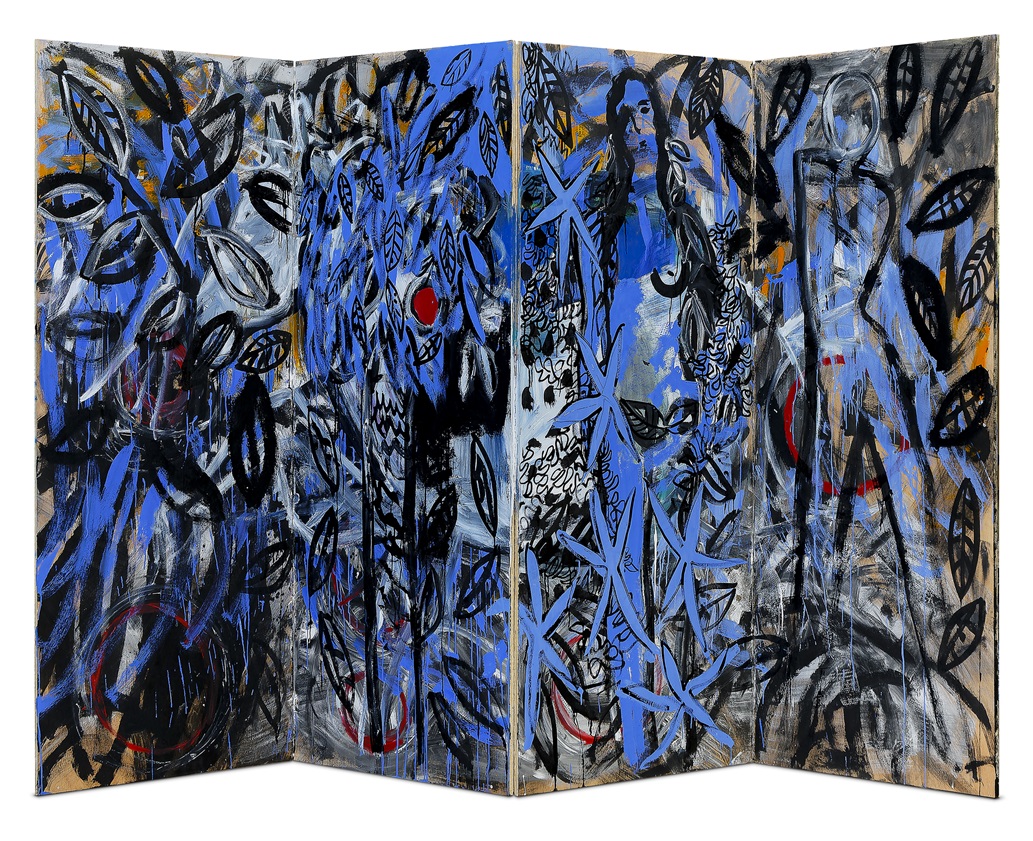 Jules Milhau est invité par la galerie Analora pour une exposition hors les murs au cœur du nouveau quartier artistique de Lisbonne. La proposition très poétique anime les 1 000 m2 d'un ancien chai, reflétant les déambulations de l'artiste le long du Tage, dans les pas des marins et au son du Fado. L'exposition emprunte son nom à la conque marine qui garde la mémoire des vagues, la Caracola. Dans l'imposante ancienne salle des cuves, l'artiste nîmois a imaginé une danse de paravents, accompagnée d'une série de toiles grand format et d'un parterre d'azulejos né de sa collaboration avec la célèbre manufacture Viúva Lamego. Visuel> Alfonsina y el Mar (recto). ©Jules Milhau
