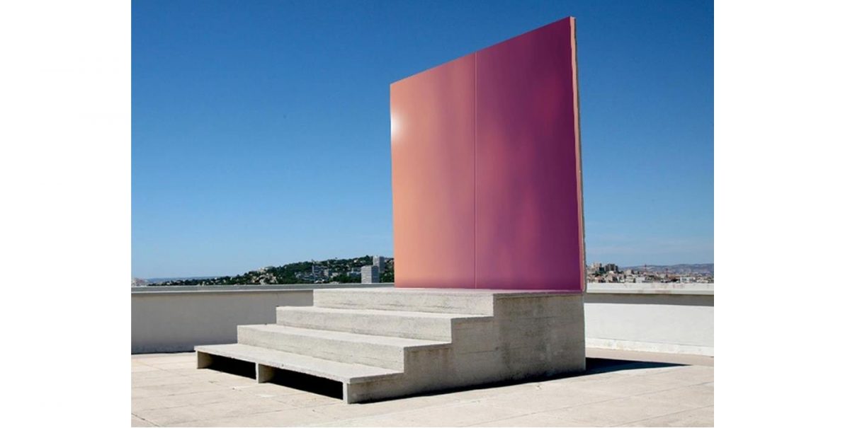 L’exposition Untitled réunit deux œuvres monochromes, monumentales (une de 18 m et l’autre de 5 m) et colorées, emblématiques des recherches en peinture engagées par l’artiste depuis quarante ans, ainsi qu’une Harley Davidson 74’ Panhead de 1957. A la recherche d’une peinture ne faisant référence qu’à elle-même et à son histoire en tant que médium, Olivier Mosset poursuit avec rigueur un travail de déconstruction de la peinture débuté dès les années 1960 au sein du groupe B.M.P.T aux côtés de Daniel Buren, Michel Parmentier et Niele Toroni. Dans son travail, l’artiste remet en question les notions de savoir-faire, d’originalité et de prétendue unicité de l’œuvre en s’approchant, par là même, au plus près des limites de la peinture. Dans une palette variée issue de l’univers plastique mais aussi des univers naval et automobile, ses monochromes sont à l’image des recherches plastique et objective de l’artiste pour qui ces médiums ne doivent être jugés uniquement pour ce qu’ils sont et la façon dont ils sont appliqués, en leur qualité unique de medium pictural, et sans aucune autre association d’idées. Visuel : Œuvre signée Olivier Mosset. © Mamo.