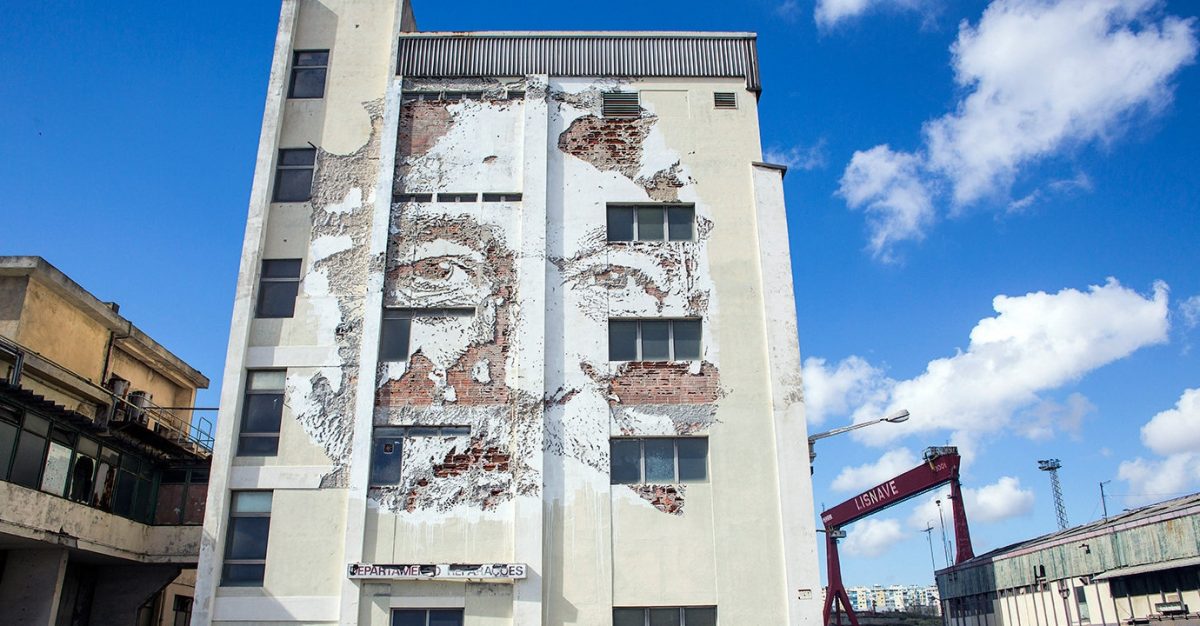 A la fois discrètes et frappantes, souvent gigantesques, les œuvres de Vhils représentent des visages anonymes, creusés dans différents matériaux ou à même les murs. Désormais connu et exposé à travers le monde, l'artiste portugais fait escale au Centquatre. L'occasion pour cet explorateur urbain de présenter au public parisien une vue d'ensemble de son travail, mais aussi d'aller une nouvelle fois à la rencontre d'une ville et de ses habitants. Visuel : Intervention signée Vhils.