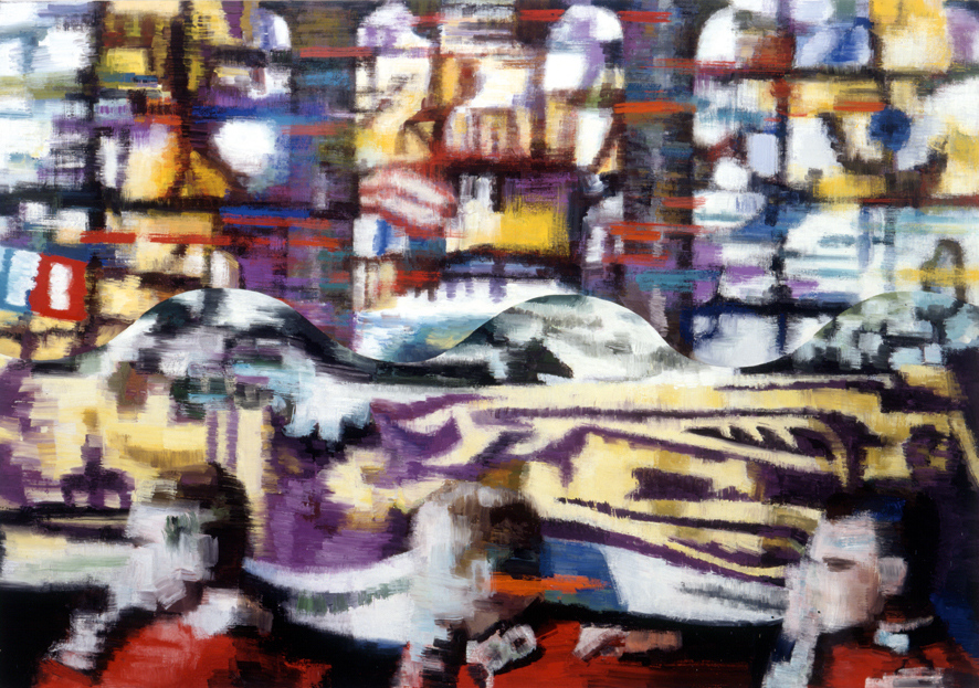 Le 31 août, survient le décès brutal et tragique de la princesse Diana à Paris. Tétanisée, elle n’en suit pas moins les funérailles en direct à la télé. De manière pulsionnelle, elle, qui est plutôt une cérébrale, prend cliché sur cliché avec son Nikon. En visionnant plus tard les planches contact, elle découvre la beauté de ces images. Pour elle, la série Diana’s Funeral, qu’elle réalise par la suite sur plusieurs années, est un moment cathartique où son « émotion s’est trouvée en phase avec l’émotion collective ». L’audace de s’attaquer à ce sujet, Carole Benzaken pense qu’elle ne l’aurait jamais eue en Europe. « J’ai trouvé aux Etats-Unis un rapport à l’intellect moins crispé, la possibilité de passer d’un médium à l’autre, “un hors cadre” en somme qui m’a permis de travailler sur Diana mais aussi de passer à autre chose… En France, j’aurais été complètement culpabilisée. » En peinture, l’artiste travaille donc sans relâche ce même thème jusqu’au tableau ultime : « Lorsqu’il est là, quand j’ai le sentiment que je suis parvenue à la “mise en vision” de ce que je cherchais, c’est fini. » La toile qui clôture cette série, elle l’a conservée précieusement dans son atelier, gardée par deux beaux chats silencieux.
