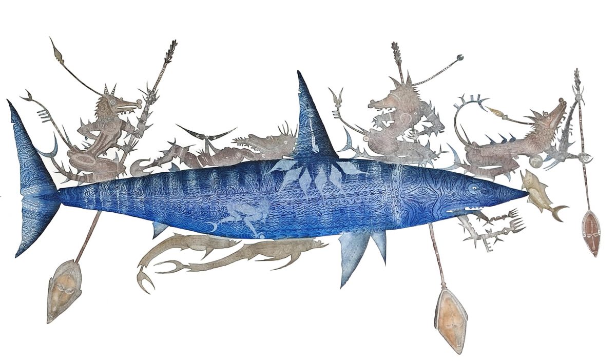 Originaire de l’archipel du détroit de Torres, qui relie la Papouasie-Nouvelle-Guinée au nord-est de l’Australie, Dennis Nona est, à 38 ans, une figure emblématique de l’art aborigène. Cinquante de ses œuvres, actuellement exposées à l’ambassade d’Australie de Paris, viennent témoigner de sa maîtrise de la sculpture, sur bois, en bronze ou en aluminium, comme de la virtuosité technique mise en œuvre pour ses linogravures et eaux-fortes. Chacune célèbre le rapport vital et privilégié des insulaires à la mer nourricière. Toutes racontent l’héritage d’un territoire baigné de mythes et de légendes, où magie et mystère côtoient depuis toujours les gestes simples du quotidien.