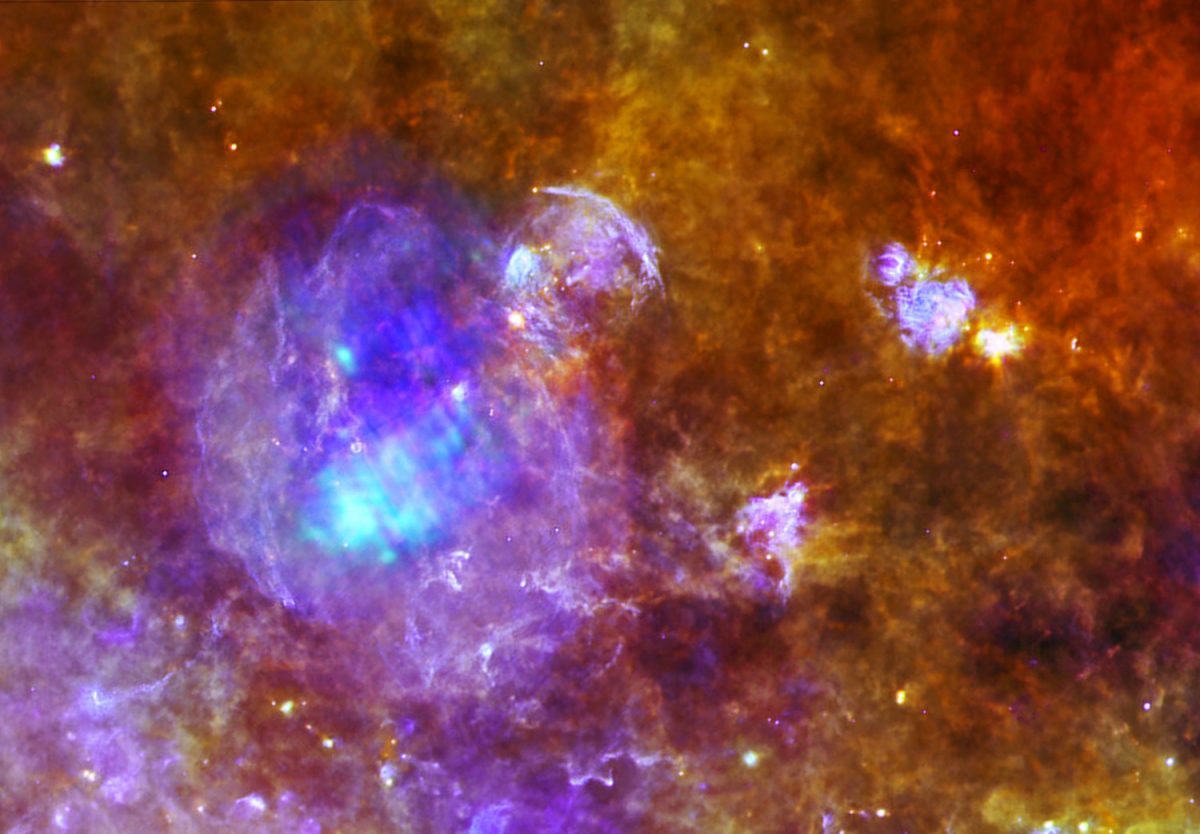 Certes, mais les motivations, les moyens et les résultats diffèrent ! La représentation de l’invisible pour un scientifique est une expérience, elle aussi basée sur des règles strictes. La plupart des objets ou des molécules sont perceptibles parce qu’ils émettent ou réfléchissent des rayonnements électromagnétiques. En étudiant la façon dont ces rayons sont réfléchis ou transmis, on peut obtenir des informations sur la composition des objets, leur comportement ou leur position dans l’univers. Ces propriétés s’étendent bien au-delà de ce que nous pouvons voir avec nos yeux ; le visible.Il se trouve que la lumière visible n’est qu’une partie infinitésimale du rayonnement électromagnétique, qui s’étend des ondes radio jusqu’aux rayons gamma produits exclusivement par la décomposition du noyau atomique. Il y a un continuum de ces ondes électromagnétiques. Le capteur qu’on connaît le mieux : c’est l’œil, la rétine qui capte le visible. Pour le reste, il a fallu inventer des capteurs pour l’infra-rouge, pour les ondes radios, pour les rayons X… Grâce à ces capteurs, les rayonnements sont transformés en signaux électriques et enfin en nombres. Au final, il est possible d’obtenir un ensemble de valeur souvent présenté sous forme graphique ; un spectre. De ce dernier on en déduit ce qu’il y a entre la source et le capteur. Si l’on attribue une couleur à chaque longueur d’onde, à partir de reconstitution spatiale des signaux nous obtenons des images, des représentations colorées et nuancées. L’invisible est alors rendu visible ! Quand je fais des images en infra rouge, je vois les soleils qui sont en train de naître, en ultraviolets ceux qui sont en pleine période d’émission, bien matures, et le visible me montre les structures observables au télescope. Si je combine le tout, je vois apparaître des relations. Le visible et l’invisible se mélangent pour raconter une histoire. L’image devient belle, mais ce n’est qu’une interprétation artificielle de données physiques. Elle est tout sauf « naturelle ».