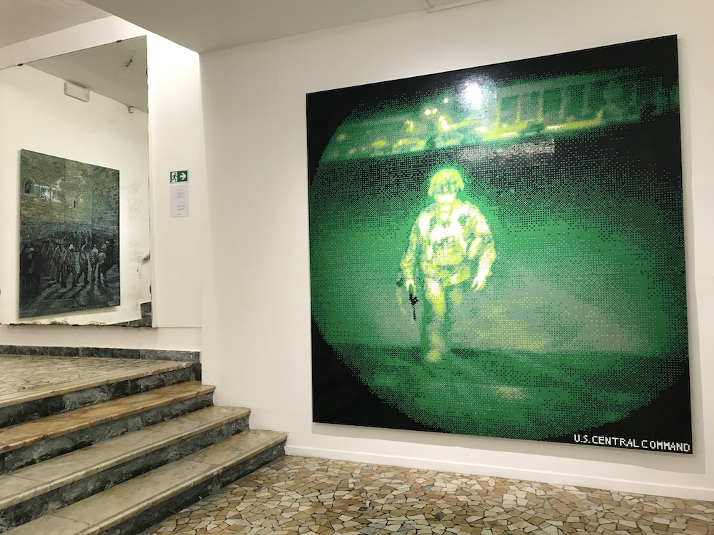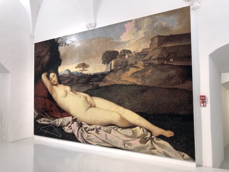 Pour quelques jours encore, Ai Weiwei est à l’affiche. L’exposition, qui retrace son parcours artistique de 1995 à aujourd’hui, présente également une large sélection d’œuvres nouvelles. Neither Nor, en français « ni l’un ni l’autre » souhaite mettre en garde contre le manichéisme des extrêmes et prône pour une pensée complexe qui refuse l’idée de vérité absolue et cherche à construire des voies alternatives. Tout au long d’un agréable parcours, le visiteur découvre installations, sculptures, photographies et surtout des œuvres créées par assemblage de briques Lego, dont l’artiste dit qu’elles lui évoquent son enfance et aussi des procédés actuels comme la pixélisation ou la numérisation. Mosaïques ou tapisseries d’un temps nouveau, les tableaux s’approprient tantôt des standards de l’histoire de l’art, tantôt des images passées dans l’inconscient collectif. Ce faisant, l’artiste en change la nature et la fonction. Ainsi, l’œil est-il surpris de découvrir un réfugié installé pour Un dimanche après-midi à l’île de la Grande Jatte (Georges Seurat) ou un cintre auprès de Vénus endormie (Giorgione), faisant mémoire, auprès de la déesse de l’amour et de la fertilité, de la brutalité des avortements quand ils ne sont pas autorisés par la loi. Depuis toujours, l’artiste pratique par télescopage et mise en perspective. Qu’il s’agisse de La Joconde barbouillée de gâteau par des activistes écologistes ou de récoltes anéanties par une invasion de criquets pèlerins au Pakistan (2020). Ai Weiwei refuse l’oubli, de la grande comme de la petite histoire. Se souvenir est une condition impérative pour penser, se déterminer, et agir. Chacune de ses œuvres est une maïeutique, qui enfonce le clou d’un art très politique.