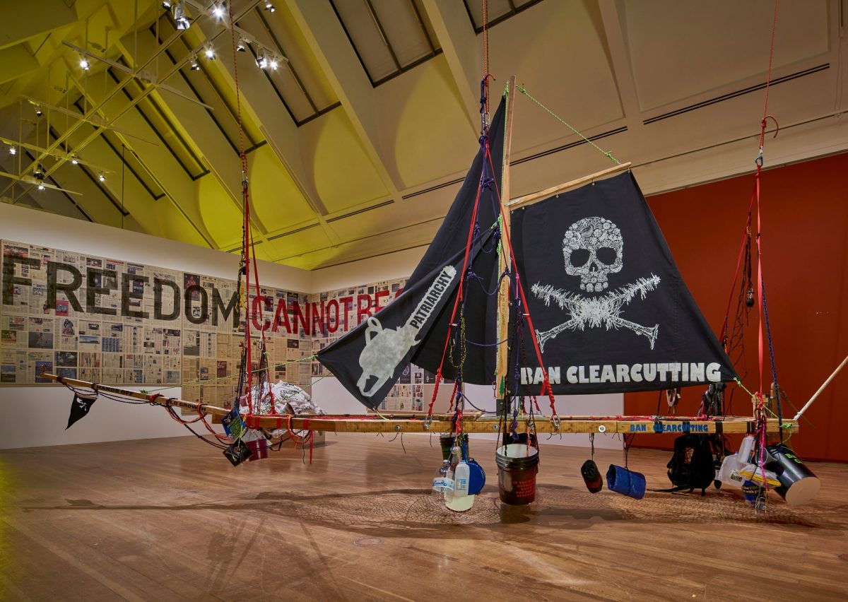 Le Centre d’art Schirn de Francfort, en Allemagne, présente une vaste exposition dédiée aux rapports qu’entretiennent aujourd’hui art et politique. Power to the People: Political Art Now (Le pouvoir au peuple : l’art politique aujourd’hui) s’appuie sur plus de 40 installations, photographies, dessins, peintures et vidéos d’une vingtaine de plasticiens internationaux* pour proposer une série de réflexions artistiques s’inscrivant dans une époque tourmentée, théâtre d’une crise inédite de la démocratie, où montée des discours populistes, réactions autocratiques, propagande totalitaire, néolibéralisme, propagation de rumeurs et autres fake news sont autant de symptômes de dysfonctionnement.
