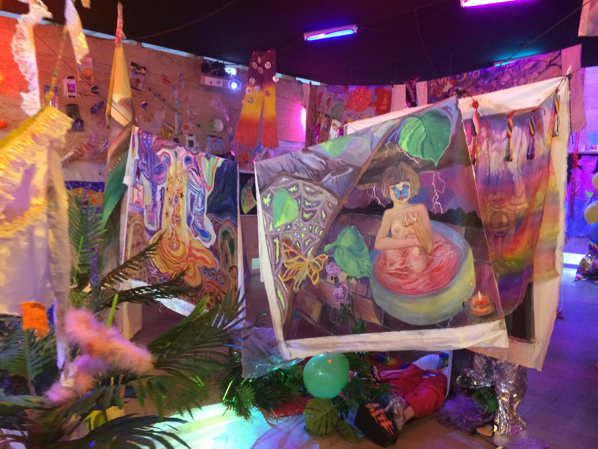Plasticiens, créateurs de mode, musiciens et même tatoueurs ont créé pour l’occasion nombre de pièces in situ, présentées sans souci de regroupement géographique et dans un désordre se voulant représentatif des grandes métropoles. Plusieurs artistes se sont vus délivrer une carte blanche pour s’emparer de toute une salle et proposer ainsi aux visiteurs de s’immerger dans différents univers singuliers. La Philippine Maria Jeona Zoleta, par exemple, présente une installation inspirée des espaces éphémères conçus pour les fêtes d’anniversaire pour enfants à Manille ; s’y s’entremêlent objets de récupération, sculptures et peintures emplis de références issues de la culture punk philippine, empruntées à l’univers kawaii japonais ou encore à la pornographie, un mélange provocant dont résulte une ambiance joyeusement débridée.
